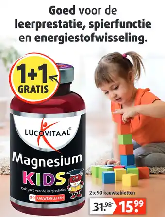 De prijs van de Magnesium kan ook teruggevonden worden hierboven op de pagina, samen met de datum van wanneer de aanbieding beschikbaar is. Ook kun je de prijzen in de huidige Lucovitaal folder of op de Lucovitaal website controleren. De aanbiedingen verzekeren je van het kopen van de Lucovitaal producten voor de laagste prijs.