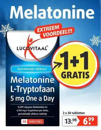 De Melatonine is momenteel met korting verkrijgbaar bij Lucovitaal. Hier vind je alle details over prijs, geldigheidsduur en actievoorwaarden. Vergeet niet om ook andere aanbiedingen en deals voor Melatonine te bekijken zodat je zeker weet dat je de beste prijs betaalt. De kortingsactie loopt van 08-02-2026 tot 14-02-2026. Is de actie inmiddels verlopen? Geen zorgen, vergelijk dan soortgelijke aanbiedingen of volg de productcategorie voor toekomstige prijsverlagingen. Zo koop je altijd met voordeel.Veelgestelde vragen over Melatonine