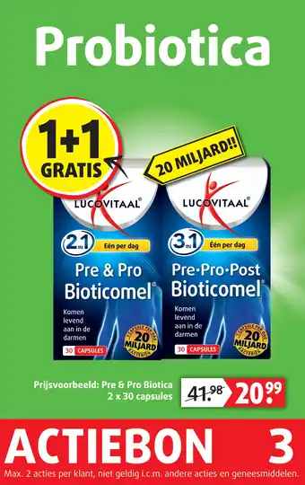 De Probiotica is momenteel met korting verkrijgbaar bij Lucovitaal. Hier vind je alle details over prijs, geldigheidsduur en actievoorwaarden. Vergeet niet om ook andere aanbiedingen en deals voor Probiotica te bekijken zodat je zeker weet dat je de beste prijs betaalt. De kortingsactie loopt van 26-04-2026 tot 02-05-2026. Is de actie inmiddels verlopen? Geen zorgen, vergelijk dan soortgelijke aanbiedingen of volg de productcategorie voor toekomstige prijsverlagingen. Zo koop je altijd met voordeel.Veelgestelde vragen over Probiotica
