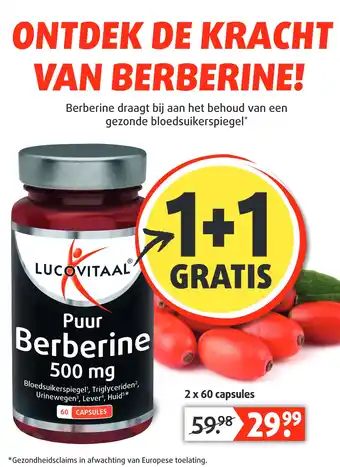 Nu in de aanbieding bij Lucovitaal: Puur Berberine 500 mg✅ Actie geldig van 8-02 t/m 14-02.