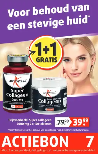 Lucovitaal biedt naast de Super Collageen 2000 mg een ruime collectie producten aan. Houd de wekelijkse Lucovitaal folder in de gaten om de beste aanbiedingen en acties te vinden. Naast Super Collageen 2000 mg, kunt u ook de volgende aanbiedingen vinden: 2+2 gratis: Lucovitaal Super Collageen 2000 mg, Lucovitaal super collageen 2500 mg sachets 7st & 2+2 gratis: Lucovitaal Super Collageen 2000 mg.