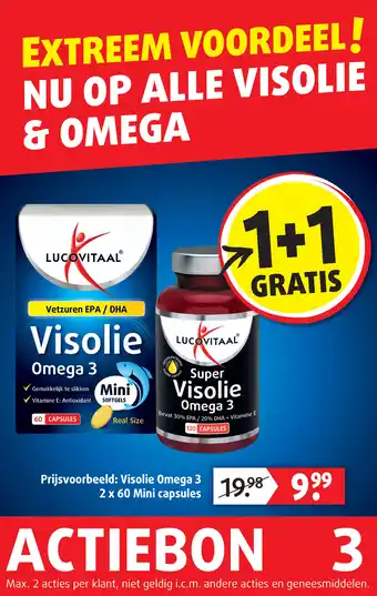 De prijs van de Visolie & Omega 3 kan ook teruggevonden worden hierboven op de pagina, samen met de datum van wanneer de aanbieding beschikbaar is. Ook kun je de prijzen in de huidige Lucovitaal folder of op de Lucovitaal website controleren. De aanbiedingen verzekeren je van het kopen van de Lucovitaal producten voor de laagste prijs.
