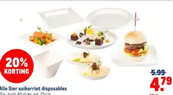 De Alle Sier suikerriet disposables is momenteel met korting verkrijgbaar bij Makro. Hier vind je alle details over prijs, geldigheidsduur en actievoorwaarden. Vergeet niet om ook andere aanbiedingen en deals voor Alle Sier suikerriet disposables te bekijken zodat je zeker weet dat je de beste prijs betaalt. De kortingsactie loopt van 07-12-2025 tot 31-12-2025. Is de actie inmiddels verlopen? Geen zorgen, vergelijk dan soortgelijke aanbiedingen of volg de productcategorie voor toekomstige prijsverlagingen. Zo koop je altijd met voordeel.Veelgestelde vragen over Alle Sier suikerriet disposables