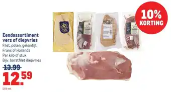 Makro biedt naast de Eendassortiment vers of diepvries een ruime collectie producten aan. Houd de wekelijkse Makro folder in de gaten om de beste aanbiedingen en acties te vinden. Naast Eendassortiment vers of diepvries, kunt u ook de volgende aanbiedingen vinden: Kalfsvlees diepvries, Diepvries Duca Snacks & Diepvries g'woon roomijs.