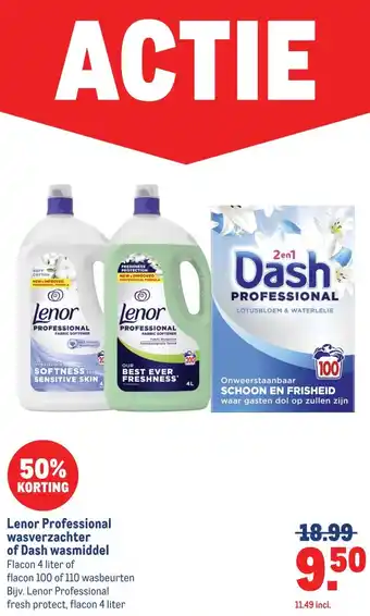 Nu in de aanbieding bij Makro: Lenor Professional wasverzachterof Dash wasmiddel✅ Actie geldig van 22-04 t/m 5-05.