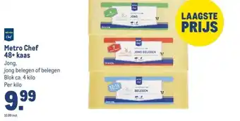 De prijs van de Metro Chef 48+ kaas kan ook teruggevonden worden hierboven op de pagina, samen met de datum van wanneer de aanbieding beschikbaar is. Ook kun je de prijzen in de huidige Makro folder of op de Makro website controleren. De aanbiedingen verzekeren je van het kopen van de Makro producten voor de laagste prijs.