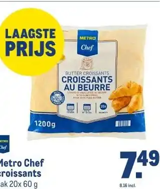 De prijs van de Metro Chef croissants kan ook teruggevonden worden hierboven op de pagina, samen met de datum van wanneer de aanbieding beschikbaar is. Ook kun je de prijzen in de huidige Makro folder of op de Makro website controleren. De aanbiedingen verzekeren je van het kopen van de Makro producten voor de laagste prijs.