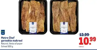 De Metro Chef gerookte makreel is momenteel met korting verkrijgbaar bij Makro. Hier vind je alle details over prijs, geldigheidsduur en actievoorwaarden. Vergeet niet om ook andere aanbiedingen en deals voor Metro Chef gerookte makreel te bekijken zodat je zeker weet dat je de beste prijs betaalt. De kortingsactie loopt van 11-03-2026 tot 24-03-2026. Is de actie inmiddels verlopen? Geen zorgen, vergelijk dan soortgelijke aanbiedingen of volg de productcategorie voor toekomstige prijsverlagingen. Zo koop je altijd met voordeel.Veelgestelde vragen over Metro Chef gerookte makreel
