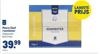 De prijs van de Metro Chef roomboter kan ook teruggevonden worden hierboven op de pagina, samen met de datum van wanneer de aanbieding beschikbaar is. Ook kun je de prijzen in de huidige Makro folder of op de Makro website controleren. De aanbiedingen verzekeren je van het kopen van de Makro producten voor de laagste prijs.