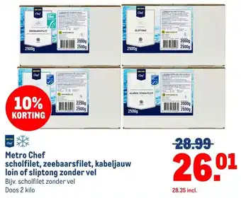 Metro Chef scholfilet, zeebaarsfilet, kabeljauw loin of sliptong zonder vel aanbieding en online acties bij Makro