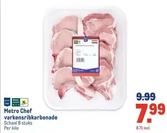 Geniet van heerlijke varkensribkarbonades van Metro Chef, verpakt in een schaal van 8 stuks per kilo. Deze karbonades zijn afkomstig van varkens met het Beter Leven keurmerk, wat staat voor een diervriendelijkere productie. Met een prijs van slechts 8,71 euro per kilo zijn deze varkensribkarbonades niet alleen lekker, maar ook betaalbaar. Perfect voor een smakelijke maaltijd voor het hele gezin. Bestel ze nu en ontdek zelf de kwaliteit van Metro Chef varkensribkarbonade!