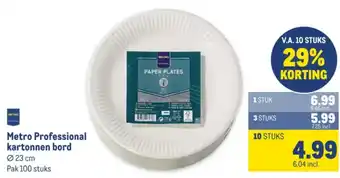 De prijs van de Metro Professional kartonnen bord kan ook teruggevonden worden hierboven op de pagina, samen met de datum van wanneer de aanbieding beschikbaar is. Ook kun je de prijzen in de huidige Makro folder of op de Makro website controleren. De aanbiedingen verzekeren je van het kopen van de Makro producten voor de laagste prijs.