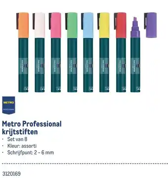 Makro biedt naast de Metro Professional krijtstiften een ruime collectie producten aan. Houd de wekelijkse Makro folder in de gaten om de beste aanbiedingen en acties te vinden. Naast Metro Professional krijtstiften, kunt u ook de volgende aanbiedingen vinden: Metro Professional krijtstiften, Metro Professional krijtstiften & Metro Professional.