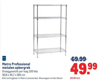 De prijs van de Metro professional metalen opbergrek kan ook teruggevonden worden hierboven op de pagina, samen met de datum van wanneer de aanbieding beschikbaar is. Ook kun je de prijzen in de huidige Makro folder of op de Makro website controleren. De aanbiedingen verzekeren je van het kopen van de Makro producten voor de laagste prijs.