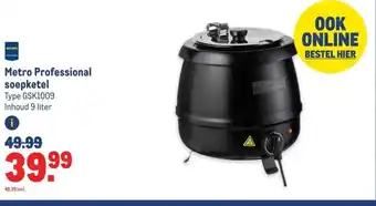 De Metro Professional soepketel is momenteel met korting verkrijgbaar bij Makro. Hier vind je alle details over prijs, geldigheidsduur en actievoorwaarden. Vergeet niet om ook andere aanbiedingen en deals voor Metro Professional soepketel te bekijken zodat je zeker weet dat je de beste prijs betaalt. De kortingsactie loopt van 28-01-2026 tot 10-02-2026. Is de actie inmiddels verlopen? Geen zorgen, vergelijk dan soortgelijke aanbiedingen of volg de productcategorie voor toekomstige prijsverlagingen. Zo koop je altijd met voordeel.Veelgestelde vragen over Metro Professional soepketel
