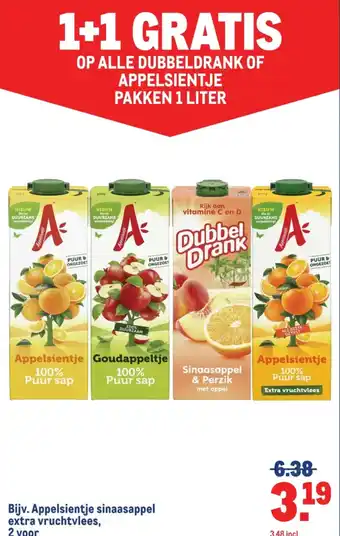 Op alle dubbeldrank of appelsientje pakken 1 liter 1+1 GRATIS