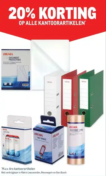 Profiteer nu van 20% korting op alle kantoorartikelen, met uitzondering van Aro kantoorartikelen. Ontdek ons uitgebreide assortiment, waaronder Sigma lijmsticks, documentbeschermers, sleutelhangers en transparante plakband. Met topmerken zoals GM en Sigma ben je verzekerd van kwaliteit. Bescherm belangrijke documenten met 100 documentbeschermers of organiseer je sleutels met Sigma 20 sleutelhangers. Of gebruik Sigma lijmsticks voor al je plakwerk. Let op: deze aanbieding is niet geldig in Makro Leeuwarden, Nieuwegein en Den Bosch. Mis deze kans niet om je kantoorbenodigdheden voordelig aan te schaffen. Bestel vandaag nog en profiteer van deze geweldige korting!