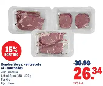 Runderribeye, -entrecote of-tournedos korting bij Makro