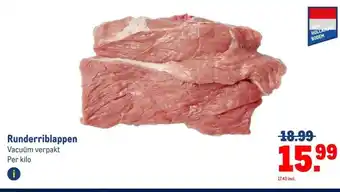 De prijs van de Runderriblappen kan ook teruggevonden worden hierboven op de pagina, samen met de datum van wanneer de aanbieding beschikbaar is. Ook kun je de prijzen in de huidige Makro folder of op de Makro website controleren. De aanbiedingen verzekeren je van het kopen van de Makro producten voor de laagste prijs.