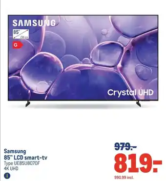 De Samsung 85" LCD smart-tv is momenteel met korting verkrijgbaar bij Makro. Hier vind je alle details over prijs, geldigheidsduur en actievoorwaarden. Vergeet niet om ook andere aanbiedingen en deals voor Samsung 85" LCD smart-tv te bekijken zodat je zeker weet dat je de beste prijs betaalt. De kortingsactie loopt van 11-01-2026 tot 27-01-2026. Is de actie inmiddels verlopen? Geen zorgen, vergelijk dan soortgelijke aanbiedingen of volg de productcategorie voor toekomstige prijsverlagingen. Zo koop je altijd met voordeel.Veelgestelde vragen over Samsung 85" LCD smart-tv