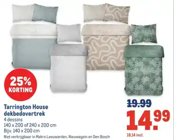 De prijs van de Tarrington House dekbedovertrek kan ook teruggevonden worden hierboven op de pagina, samen met de datum van wanneer de aanbieding beschikbaar is. Ook kun je de prijzen in de huidige Makro folder of op de Makro website controleren. De aanbiedingen verzekeren je van het kopen van de Makro producten voor de laagste prijs.