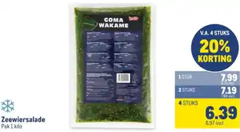 De prijs van de Zeewiersalade kan ook teruggevonden worden hierboven op de pagina, samen met de datum van wanneer de aanbieding beschikbaar is. Ook kun je de prijzen in de huidige Makro folder of op de Makro website controleren. De aanbiedingen verzekeren je van het kopen van de Makro producten voor de laagste prijs.