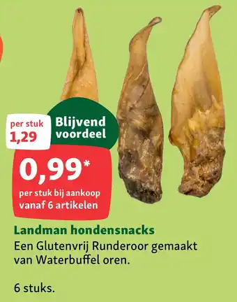 Geniet van een blijvend voordeel met de Landman hondensnacks, zoals het Glutenvrij Runderoor gemaakt van Waterbuffeloren. Deze heerlijke snacks zijn verkrijgbaar voor slechts €1,29 per stuk bij aankoop vanaf 6 artikelen. Verwen je trouwe viervoeter met deze smakelijke traktatie die niet alleen lekker is, maar ook nog eens glutenvrij. De Landman hondensnacks zijn van hoge kwaliteit en zorgen voor urenlang kauwplezier. Met 6 stuks van deze heerlijke Runderoren kan je hond zich helemaal uitleven. Profiteer nu van dit voordelige aanbod en geef je hond de beloning die hij verdient. Bestel de Landman hondensnacks vandaag nog en zie hoe blij je harige vriend zal zijn!