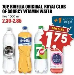 7UP, RIVELLA ORIGINAL, ROYAL CLUB OF SOURCY VITAMIN WATER aanbieding bij MCD Supermarkt