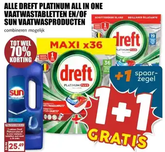 Koop ALLE DREFT PLATINUM ALL IN ONE VAATWASTABLETTEN EN/OF SUN VAATWASPRODUCTEN komende week met korting