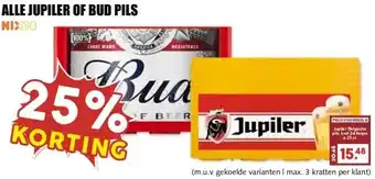 ALLE JUPILER OF BUD PILS aanbieding bij MCD Supermarkt