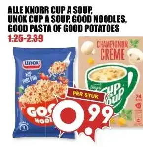 ALLE KNORR CUP A SOUP, UNOX CUP A SOUP, GOOD NOODLES, GOOD PASTA OF GOOD POTATOES