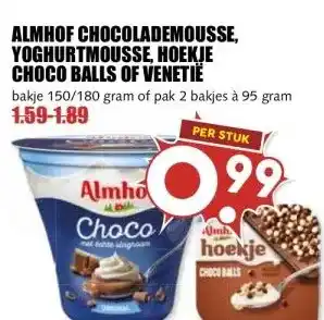 ALMHOF CHOCOLADEMOUSSE, YOGHURTMOUSSE, HOEKJE CHOCO BALLS OF VENETIE aanbieding bij MCD Supermarkt