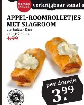 Deze APPEL-ROOMROLLETJES MET SLAGROOM is beschikbaar in onderstaande filialen op basis van jouw ingestelde locatie: