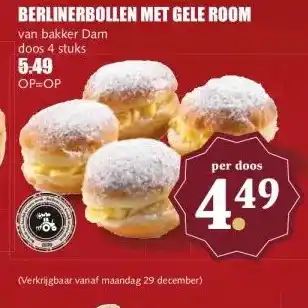 Nu in de aanbieding bij MCD Supermarkt: BERLINERBOLLEN MET GELE ROOM✅ Actie geldig van 27-12 t/m 4-01.
