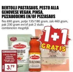 BERTOLLI PASTASAUS, PESTO ALLA GENOVESE VEGAN, PINSA, PIZZABODEMS EN/OF PIZZASAUS