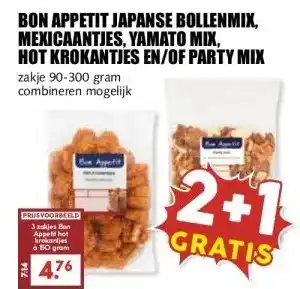 Koop BON APPETIT JAPANSE BOLLENMIX, MEXICAANTJES, YAMATO MIX, HOT KROKANTJES EN/OF PARTY MIX komende week met korting