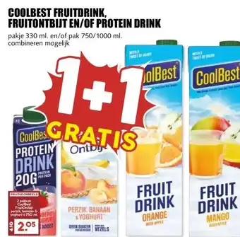 COOLBEST FRUITDRINK, FRUITONTBIJT EN/OF PROTEIN DRINK aanbieding en online acties bij MCD Supermarkt