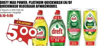 DREFT MAX POWER, PLATINUM QUICKWASH EN/OF QUICKWASH VLOEIBAAR AFWASMIDDEL korting bij MCD Supermarkt