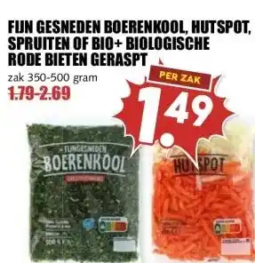 Koop FIJN GESNEDEN BOERENKOOL, HUTSPOT, SPRUITEN OF BIO+ BIOLOGISCHE RODE BIETEN GERASPT komende week met korting