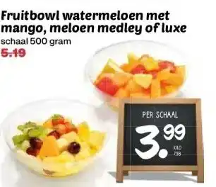 Koop Fruitbowl watermeloen met mango, meloen medley of luxe komende week met korting