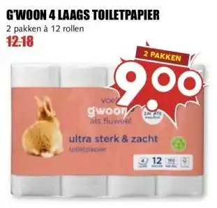 G'WOON 4 LAAGS TOILETPAPIER aanbieding en online acties bij MCD Supermarkt