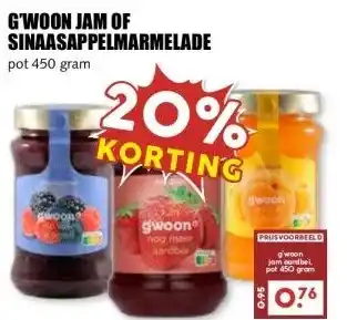 Koop G'WOON JAM OF SINAASAPPELMARMELADE komende week met korting