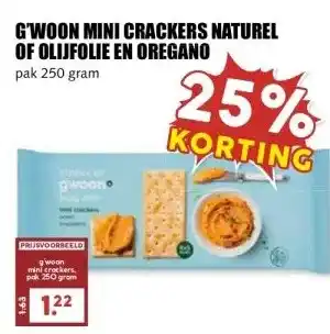 Koop G'WOON MINI CRACKERS NATUREL OF OLIJFOLIE EN OREGANO komende week met korting