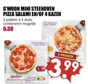 G'WOON MINI STEENOVEN PIZZA SALAMI EN/OF 4 KAZEN aanbieding bij MCD Supermarkt