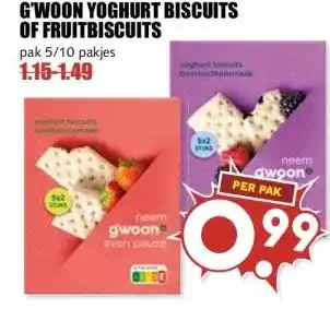 Koop G'WOON YOGHURT BISCUITS OF FRUITBISCUITS komende week met korting