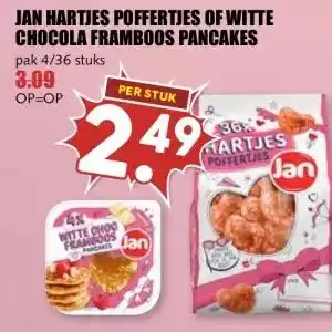 JAN HARTJES POFFERTJES OF WITTE CHOCOLA FRAMBOOS PANCAKES korting bij MCD Supermarkt