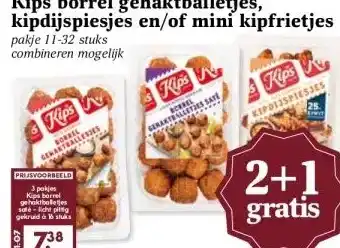 Kips borrel gehaktballetjes, kipdijspiesjes en/of mini kipfrietjes aanbieding en online acties bij MCD Supermarkt