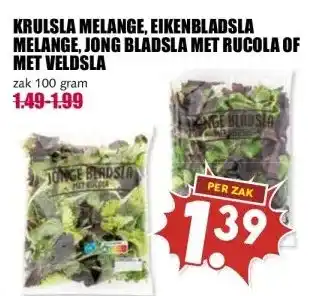 KRULSLA MELANGE, EIKENBLADSLA MELANGE, JONG BLADSLA MET RUCOLA OF MET VELDSLA aanbieding en online acties bij MCD Supermarkt