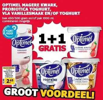 OPTIMEL MAGERE KWARK, PROBIOTICA YOGHURT, VLA VANILLESMAAK EN/OF YOGHURT