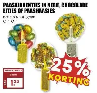 PAASKUIKENTJES IN NETJE, CHOCOLADE EITJES OF PAASHAASJES korting bij MCD Supermarkt